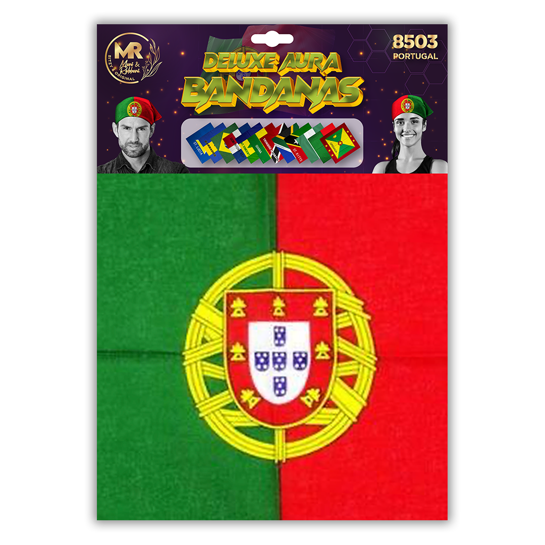 Carnival Country Flag Deluxe Aura Portugal Bandana - Bold Portuguese Flag Head Scarf, Festival & Fashion Accessory - 8503
