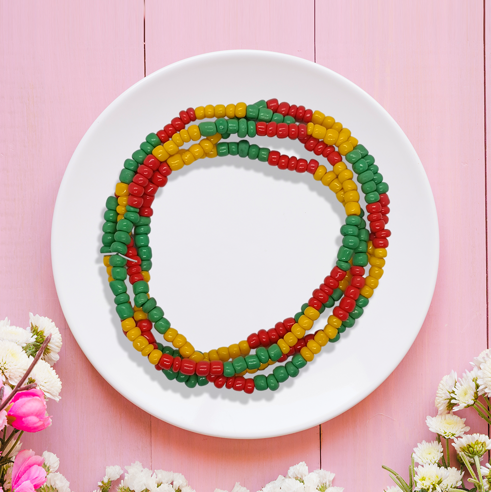 These adjustable waist beads are versatile and easy to wear, making them ideal for women of all shapes and sizes. The vibrant three-color combination adds a unique charm, making them a must-have accessory for cultural expression, body adornment, or even as a waist trainer aid.