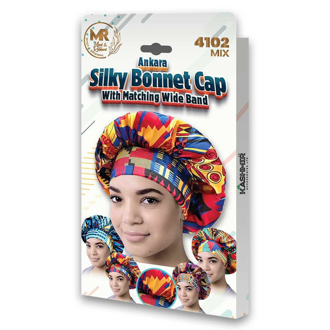 Ankara Silky Bonnet Cap with Matching Wide Band - Hair Protection & Sleep Cap for Women, Soft & Comfortable- 4102
