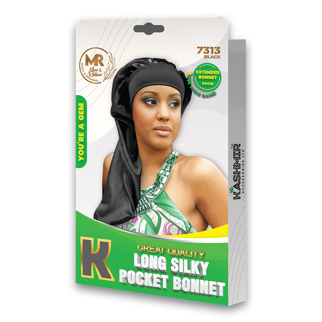MR Great Quality Long Silky Pocket Bonnet Extended Bonnet Black - 7313