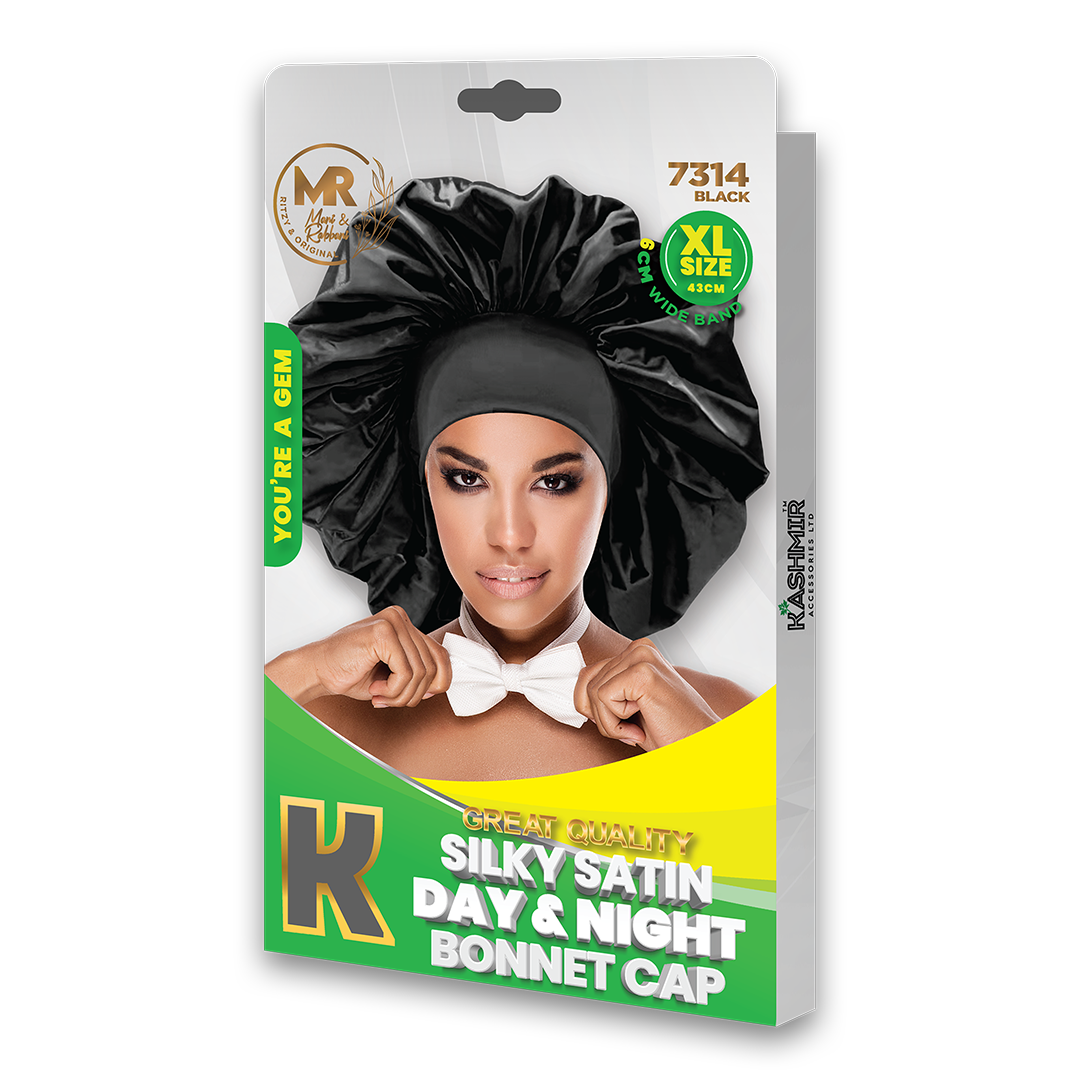 MR Great Quality Silky Satin Day & Night Bonnet Cap Extra Large Black - 7314