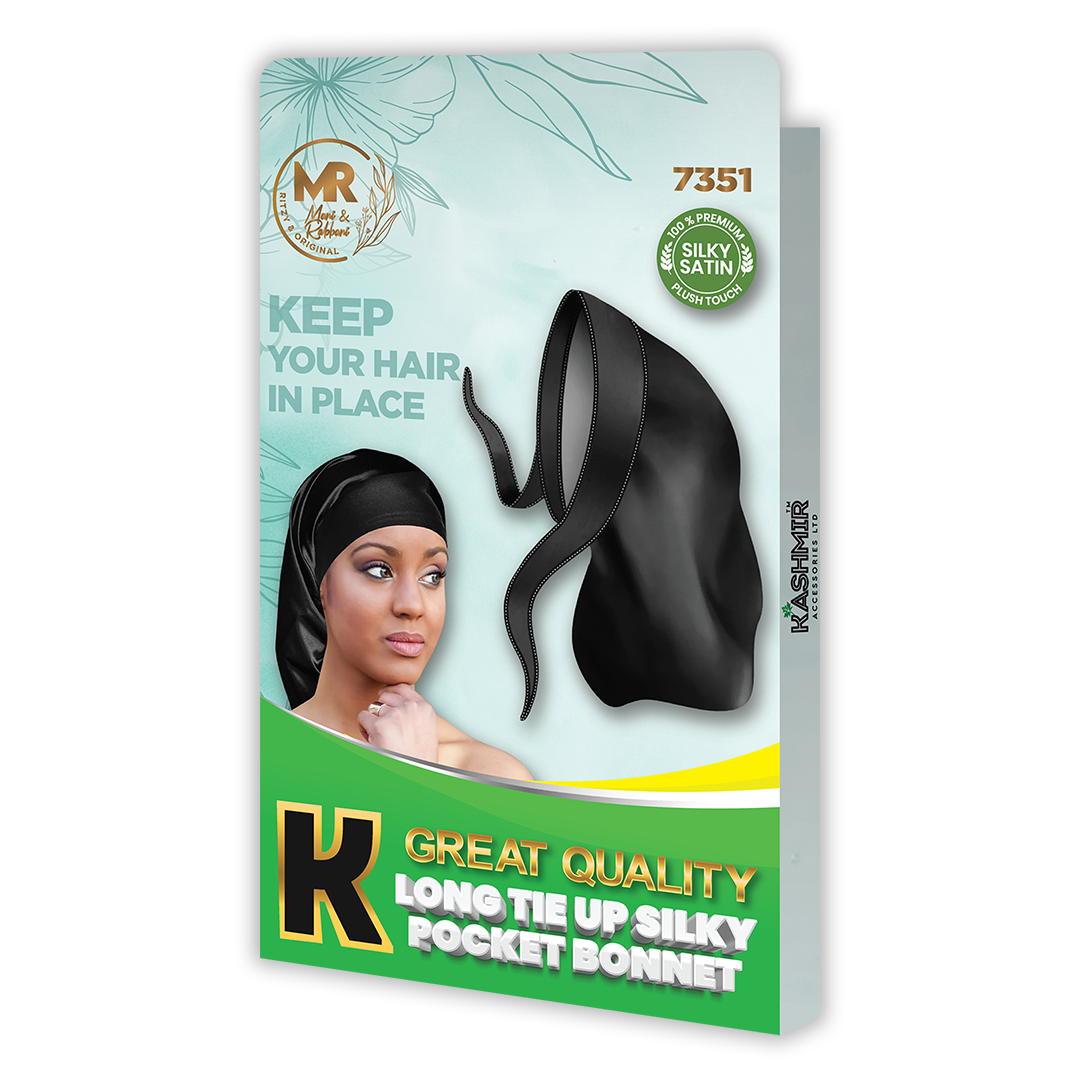Elevate your style with the MR Keep Your Hair In Place Long Tie Up Silky Bonnet brought to you by Kashmir Accessories Ltd. Experience the perfect blend of style and functionality with the Long Tie Up Silky Pocket Bonnet from Kashmir Accessories Ltd. This bonnet offers a luxurious feel and a secure fit, ideal for protecting your hair while you sleep or on the go. The silky satin material ties neatly and wraps smoothly, helping you achieve the look you want. Wearing this will help reduce frizz and prevent split ends.