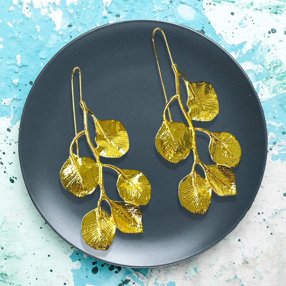 The New Branch with Leaves Gold Earrings (SKU: 2731) embody natural beauty and refined artistry. Whether you're looking to make a statement or add a subtle touch of elegance, these earrings are a stunning accessory for any jewelry lover.