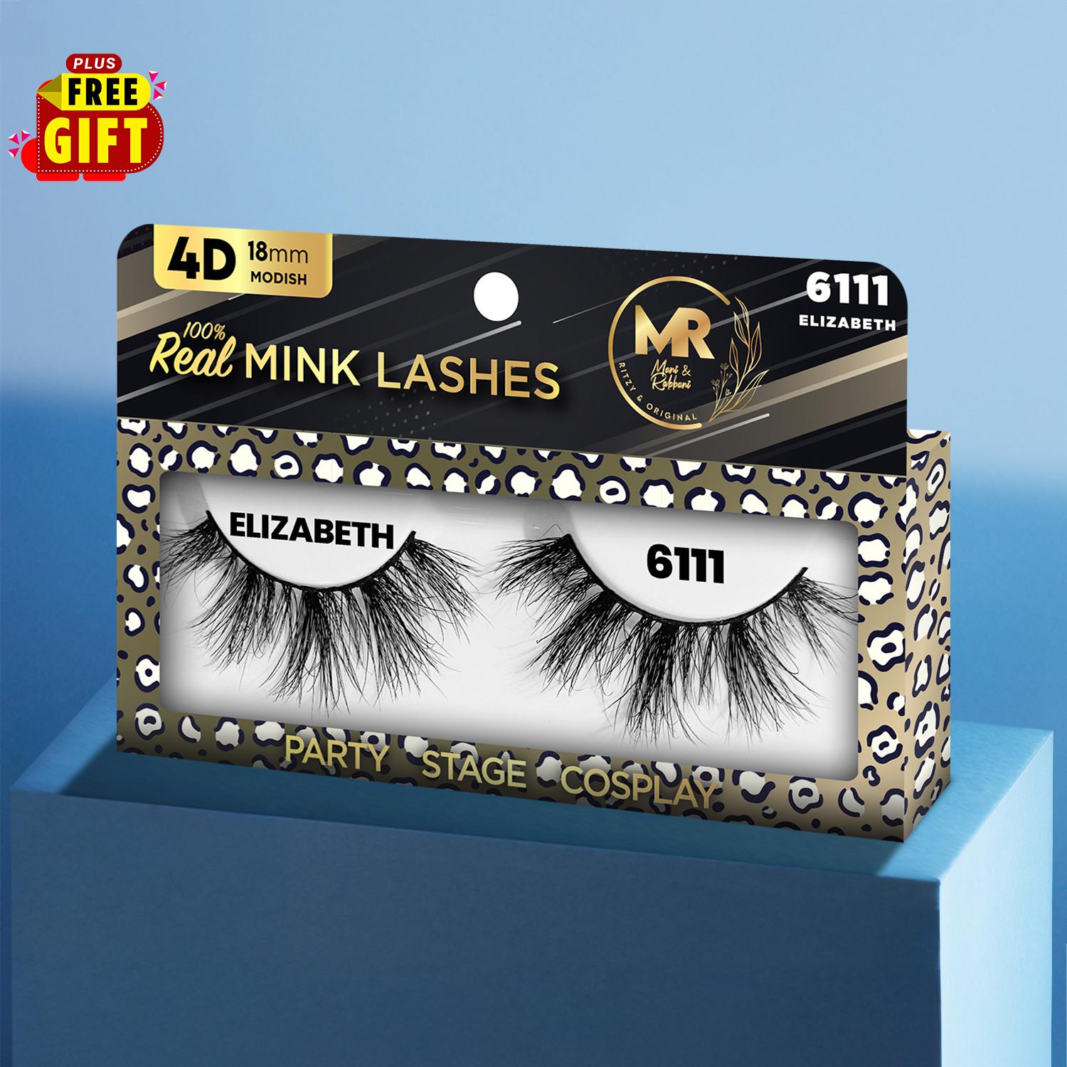 MR 4D Mink Lashes, 18mm Modish, Fluffy, Full, Thick, Dramatic, Eyelashes, Makeup, Cosmetic, Free Gift Included - 6111 Elizabeth