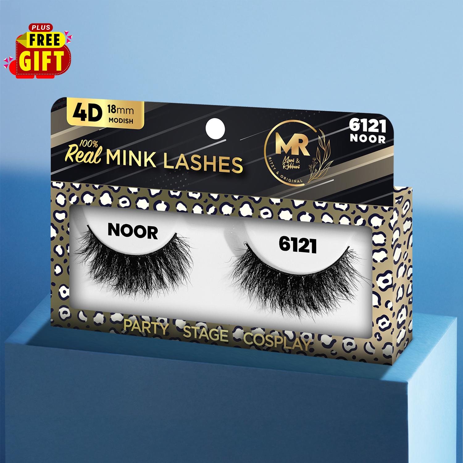 MR 4D Mink Lashes, 18mm Modish, Fluffy, Full, Thick, Dramatic, Eyelashes, Makeup, Cosmetic, Free Gift Included - 6121 NOOR