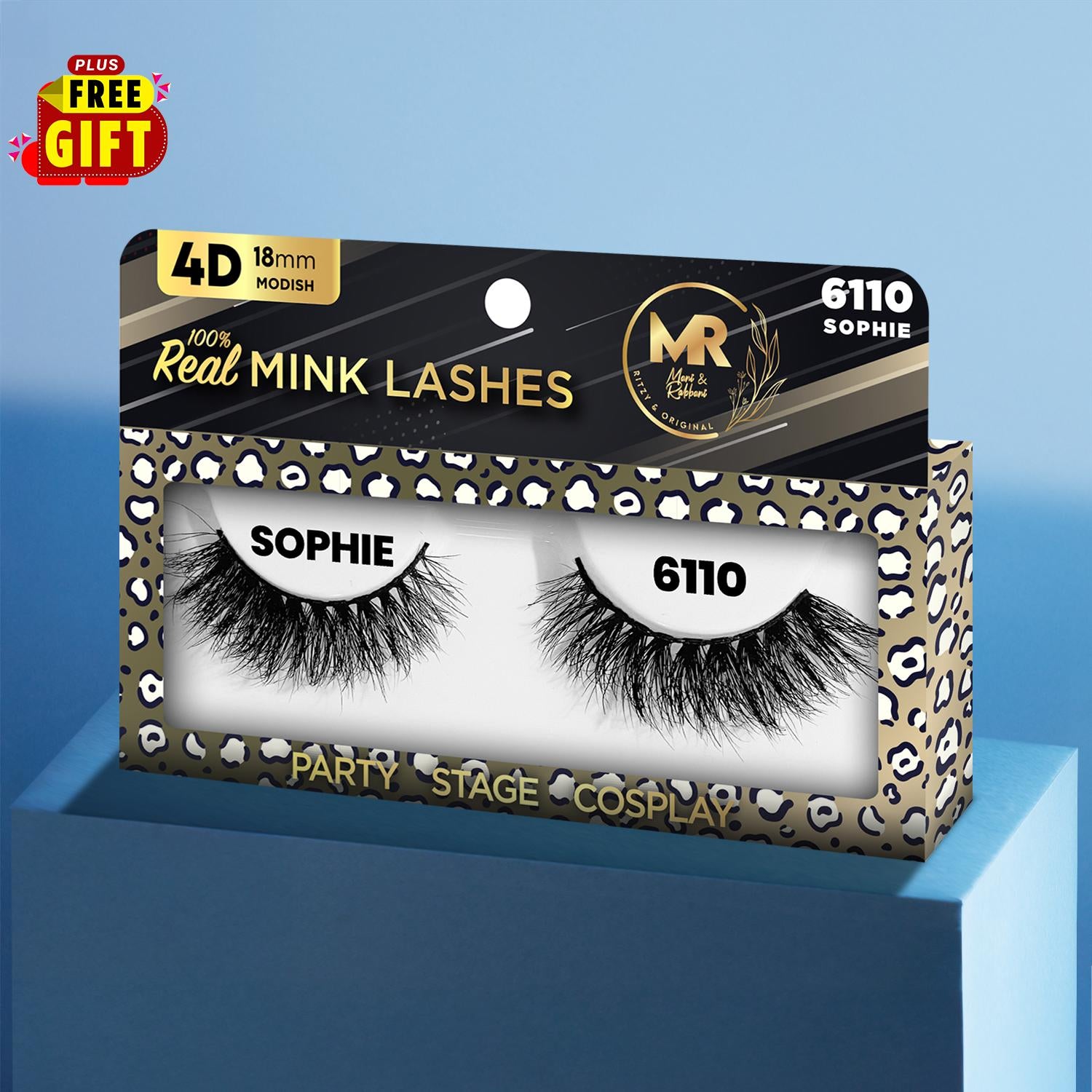 MR 4D Mink Lashes, 18mm Modish, Fluffy, Full, Thick, Dramatic, Eyelashes, Makeup, Cosmetic, Free Gift Included - 6110 Sophie