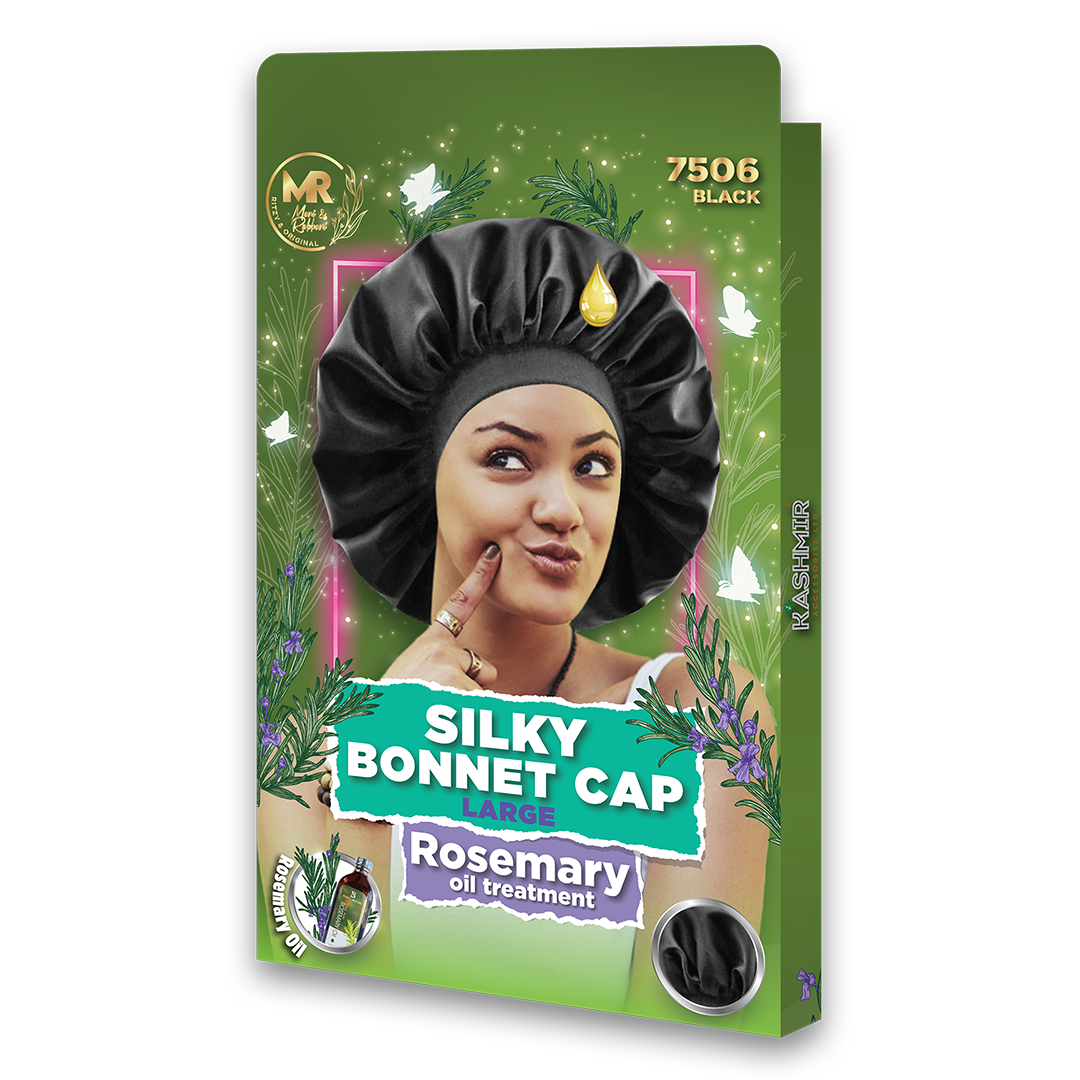 The MR Women Silky Bonnet Cap with Rosemary Treatment from Kashmir Accessories Ltd is infused with the highest quality rosemary oil. It is specifically designed to promote regrowth, prevent drying, and minimise breakage. It is made of luxurious polyester silky satin material, ensuring a gentle and comfortable experience while promoting hair health. Beautifully packed in a box, it also makes an excellent gift for yourself or someone special!