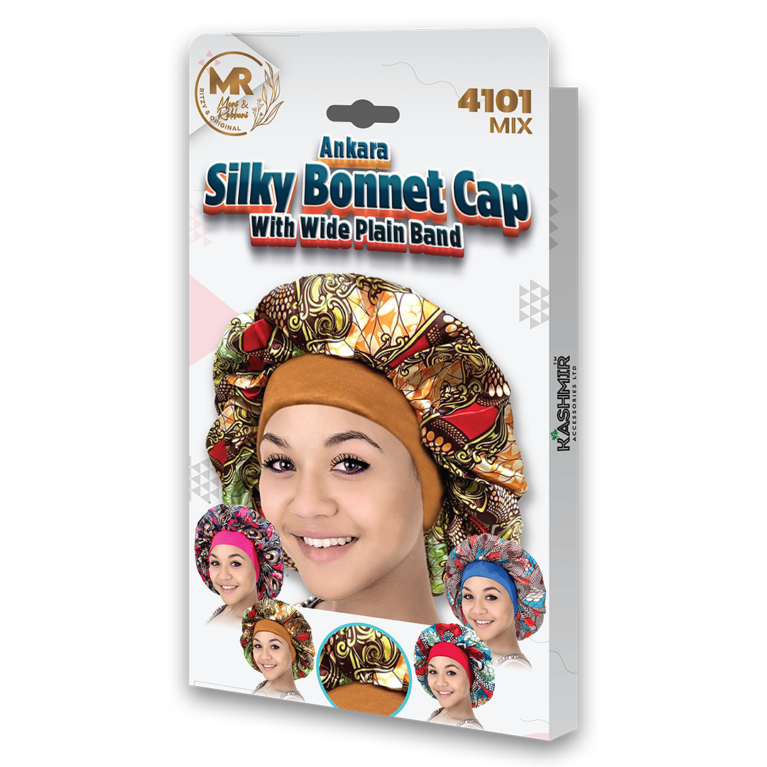 Enhance your hair care routine with the Ankara Silky Bonnet Cap, featuring a wide plain band for a sleek and comfortable fit. This high-quality bonnet cap is perfect for maintaining your hairstyle and keeping your hair healthy and hydrated.